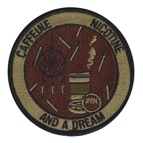 Custom patches for the United States Air Force Caffeine Nicotine. Our USAF Caffeine Nicotine patches are 100% embroidered with Velcro backing.