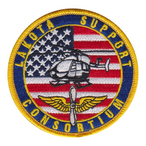 Custom patches for the Lakota Support Consortium. Our Lakota Support Consortium patches are 100% embroidered with Velcro backing.
