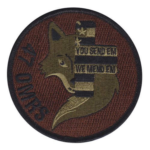 Custom patches for the 47th Operational Medical Readiness Squadron at Laughlin Air Force Base, Texas. Our 47 OMRS patches are 100% embroidered with Velcro backing.