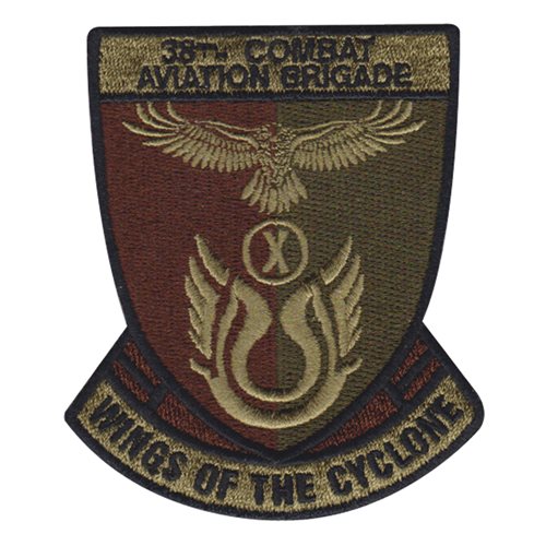 Custom patches for the 38th Combat Aviation Brigade. Our 38 CAB patches are 100% embroidered with Velcro backing.
