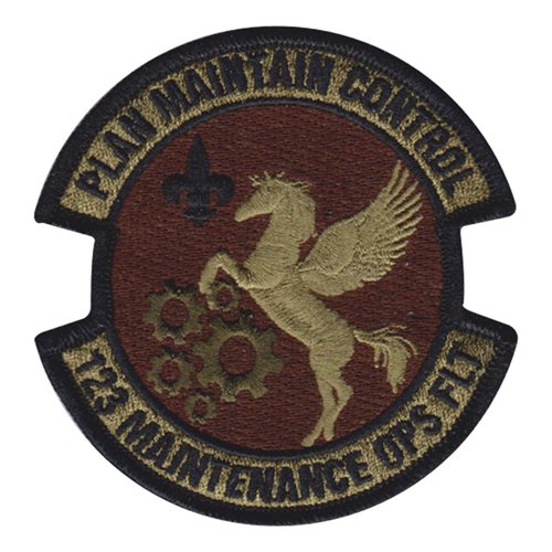 Custom patches for the 123rd Maintenance Operations Flight at Air National Guard, Louisville, Kentucky. Our 123 MOF KY ANG patches are 100% embroidered with Velcro backing.