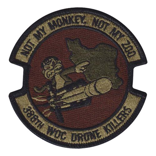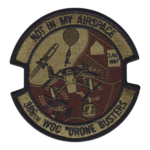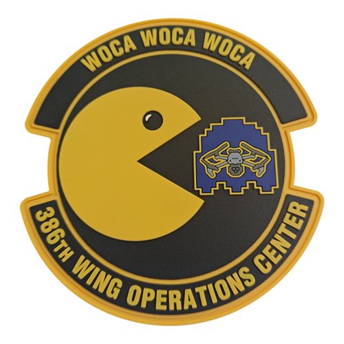 Custom patches for the 386th Wing Operations Center. Our 386 WOC patches are 100% embroidered with Velcro backing.