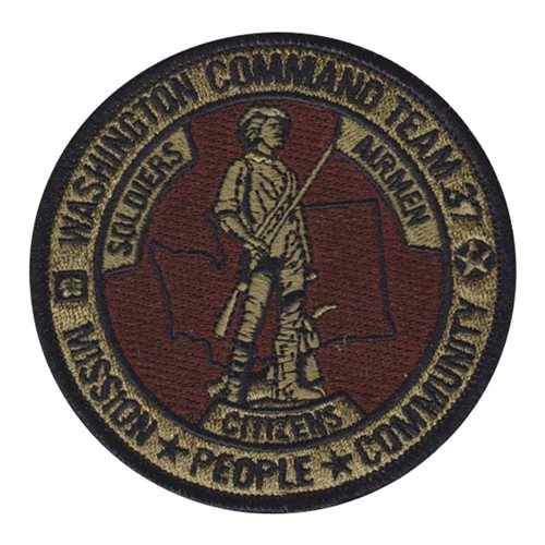 Custom patches for the Washington Command Team 37 of Washing Air National Guard at Camp Murray, Washington. Our Washington Command Team 37 WA ANG patches are 100% embroidered with Velcro backing.
