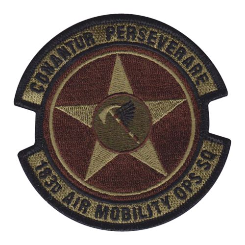 Custom patches for the 183d Air Mobility Operations Squadron at Scott Air Force Base, Belleville, Illinois. Our 183 AMOS IL ANG patches are 100% embroidered with Velcro backing.