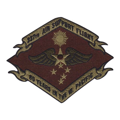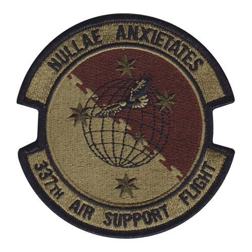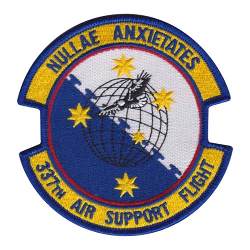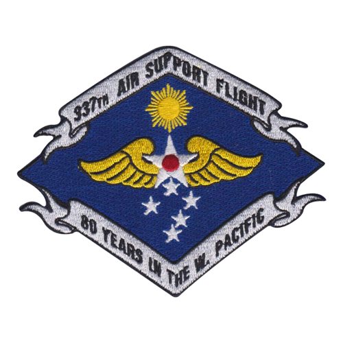 Custom patches for the 337 Air Support Flight at Yokota Air Base, Japan. Our 337 ASUF patches are 100% embroidered with Velcro backing.