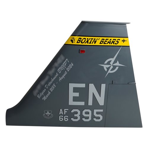 Your custom mahogany wood Northrop T-38C Talon aircraft tail flashes are hand-carved and painted with squadron markings, any patch, tail number, and any three lines of personalized text.