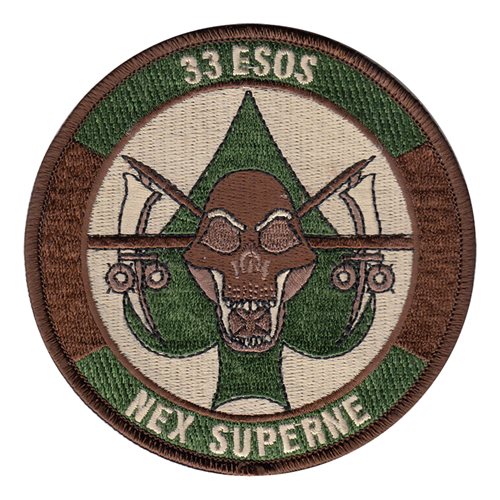 Custom patches for 33d Expeditionary Special Operations Squadron at Cannon Air Force Base, New Mexico. Our 33 ESOS patches are 100% embroidered with Velcro backing.