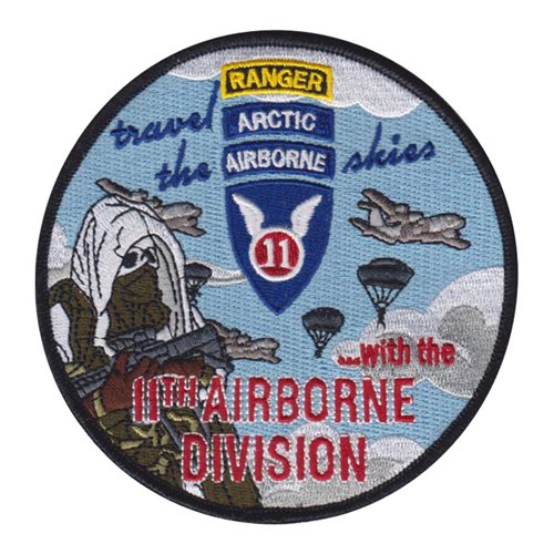 Custom patches for the 11th Airborne Division at Joint Base Elmendorf-Richardson, Alaska. Our 11 ABN DIV patches are 100% embroidered with Velcro backing.