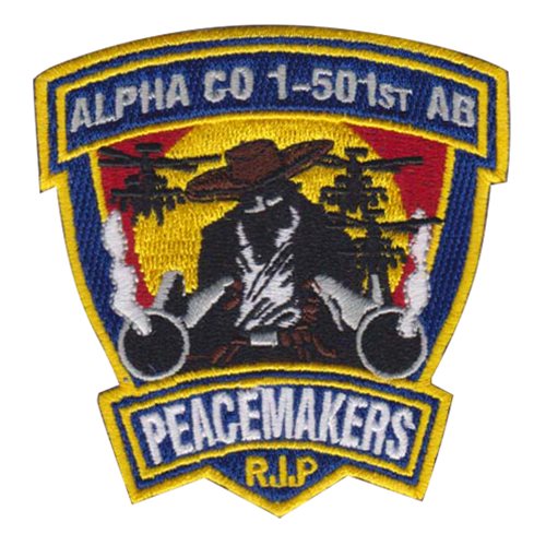 Custom patches for the Alpha Company, 1st Battalion, 501st Airborne. Our A Co 1-501 AB patches are 100% embroidered with Velcro backing.