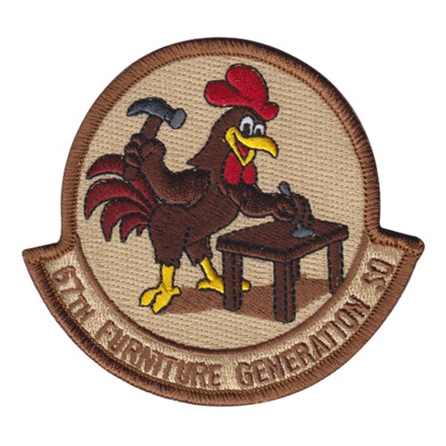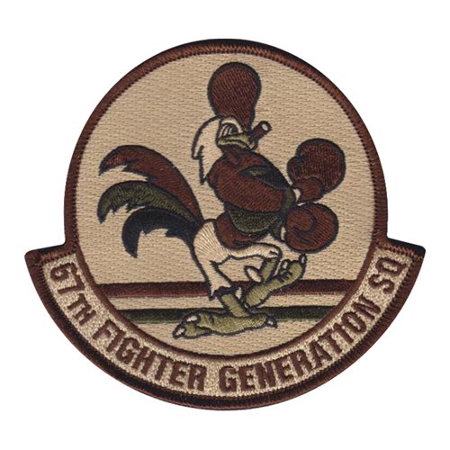 Custom patches for the 67th Fighter Generation Squadron at Kadena Air Base, Japan. Our 67 FGS patches are 100% embroidered with Velcro backing.