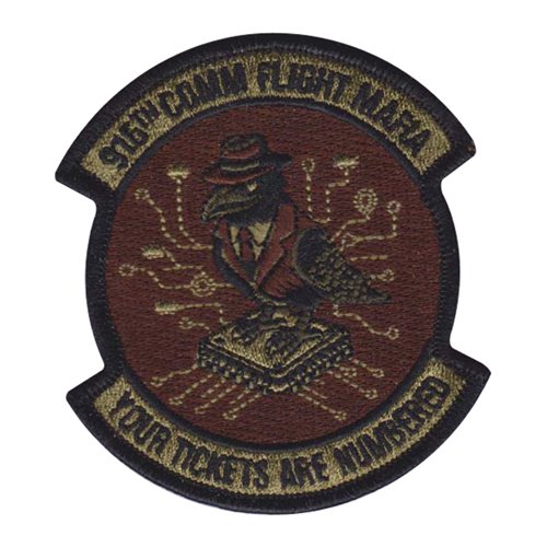 Custom patches for the 916 Communications Flight at Seymour Johnson Air Force Base, North Carolina. Our 916 CF patches are 100% embroidered with Velcro backing.