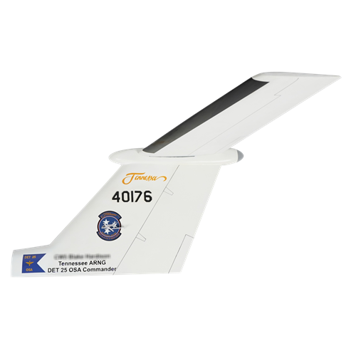 Your custom mahogany wood C-12 Huron aircraft tail flashes are hand-carved and painted with squadron markings, any patch, tail number, and any three lines of personalized text.