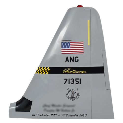 Your custom mahogany wood C-130 Hercules aircraft tail flashes are hand-carved and painted with squadron markings, any patch, tail number, and any three lines of personalized text.
