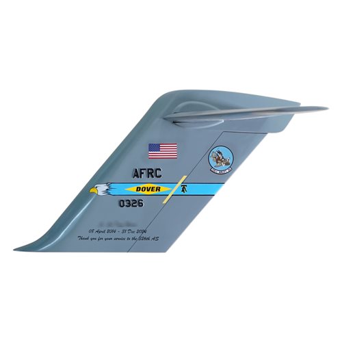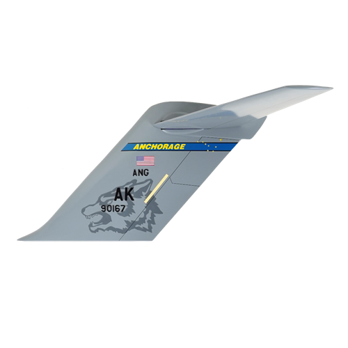 Your custom mahogany wood C-17A Globemaster III aircraft tail flashes are hand-carved and painted with squadron markings, any patch, tail number, and any three lines of personalized text.