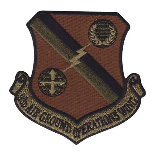 Custom patches for the 93d Air Ground Operations Wing at Moody AFB, U.S. Air Force. Our 93 AGOW patches are 100% embroidered with Velcro backing.