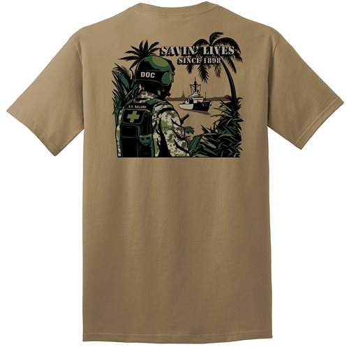One idea is to have us reduce your squadron emblem to a 1-color design for the front left chest and then we can create a unique full-color image for the back of the shirt. Or go with your color patch on the front with a custom 1 or 2 color design on the back.