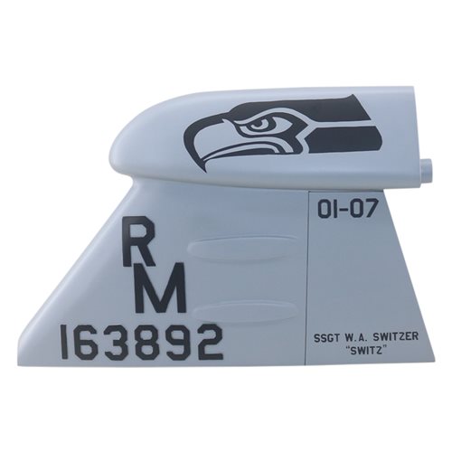Your custom mahogany wood EA-6B Prowler aircraft tail flashes are hand-carved and painted with squadron markings, any patch, tail number, and any three lines of personalized text.