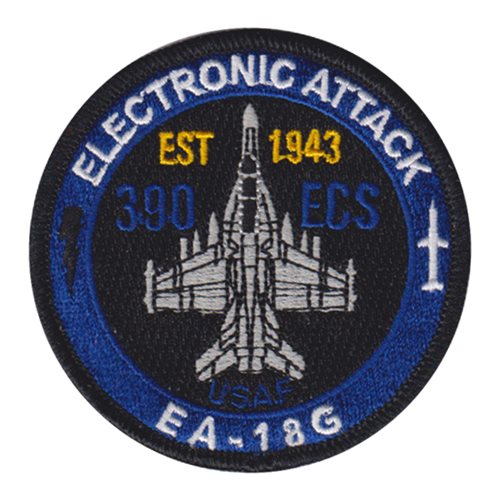 Custom patches for the 390th Electronic Combat Squadron at Naval Air Station Whidbey Island, Washington. Our 390 ECS patches are 100% embroidered with Velcro backing.
