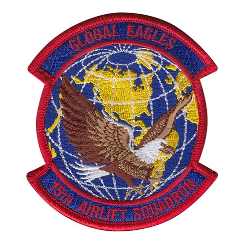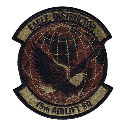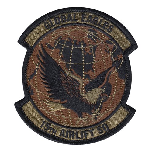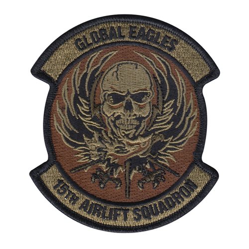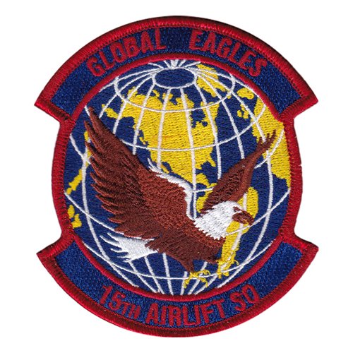 Custom patches for 15th Airlift Squadron at Charleston Air Force Base, South Carolina. Our 15 AS patches are 100% embroidered with Velcro backing.