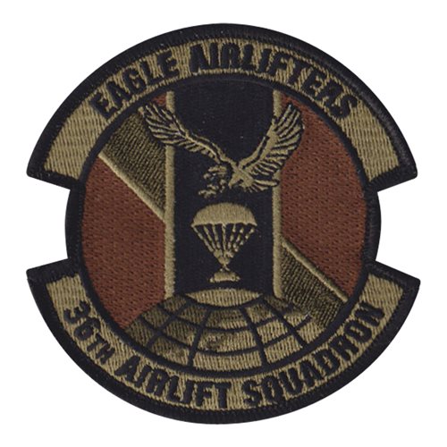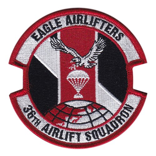 Custom patches for the 36th Airlift Squadron at Yokota Air Base, Japan. Our 6th Airlift Squadron patches are 100% embroidered with Velcro backing.