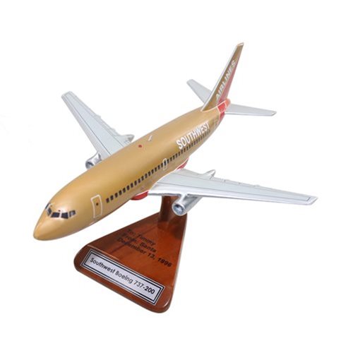 Your solid mahogany wood Southwest Airlines desktop model is 100% customized with SWA markings, any livery, and any FAA registration number. Personalized stands are included with any logo and text. After you place your order, we will email a detailed customization form to capture the details. Digital photos of your completed aircraft model will be emailed for your final approval prior to shipment. Our miniature models are 8 inches long with the same level of customization and personalization.