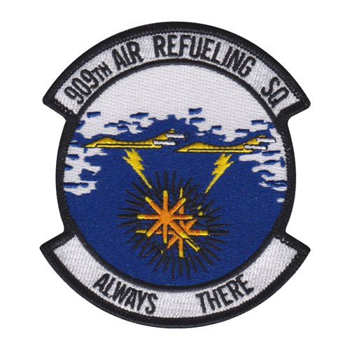 Custom patches for 909th Air Refueling Squadron at Kadena Air Base. Our 909 ARS patches are 100% embroidered with Velcro backing.