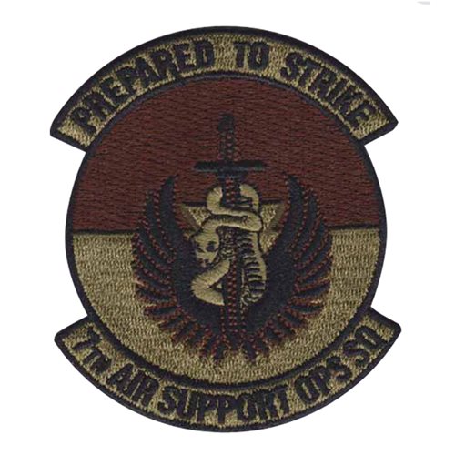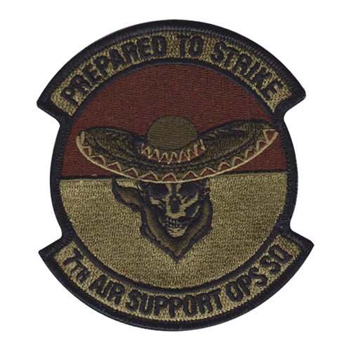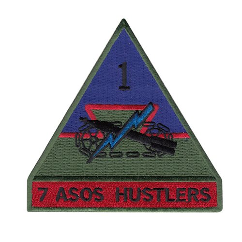 Custom patches for the 7th Air Support Operations Squadron at Fort Bliss, Texas. Our 7 ASOS patches are 100% embroidered with Velcro backing.