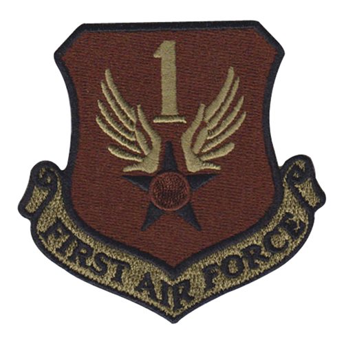 Custom patches for the First Air Force at Tyndall Air Force Base, Florida. Our 1 AF patches are 100% embroidered with Velcro backing.