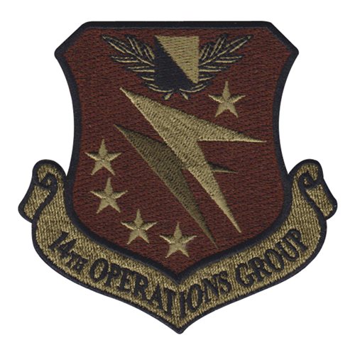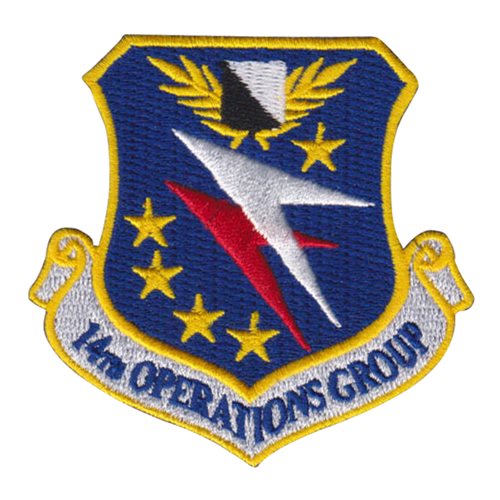 Custom patches for the 14th Operations Group at Columbus Air Force Base, Mississippi. Our 14 OG patches are 100% embroidered with Velcro backing.