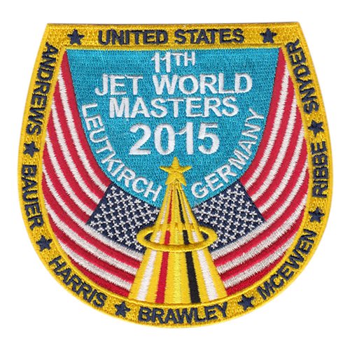 Custom patches for the United States Jet World Masters teams. Our Team USA patches are 100% embroidered with Velcro backing.