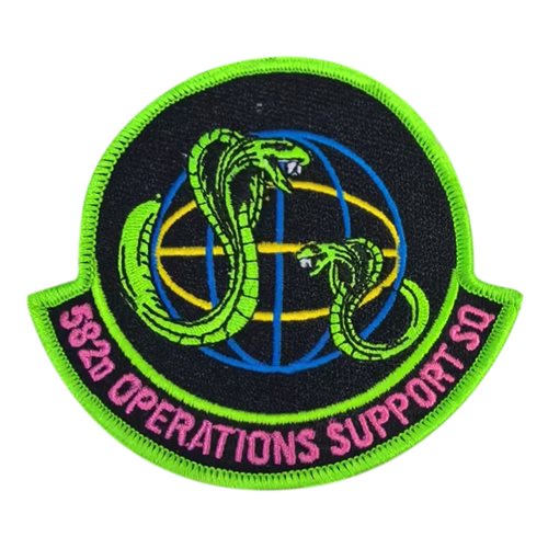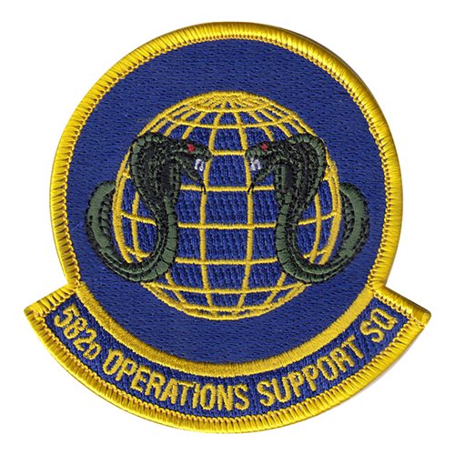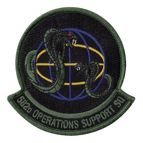 Custom patches for the 582d Operations Support Squadron at Francis E. Warren Air Force Base, Wyoming. Our 582 OSS patches are 100% embroidered with Velcro backing.