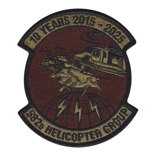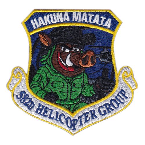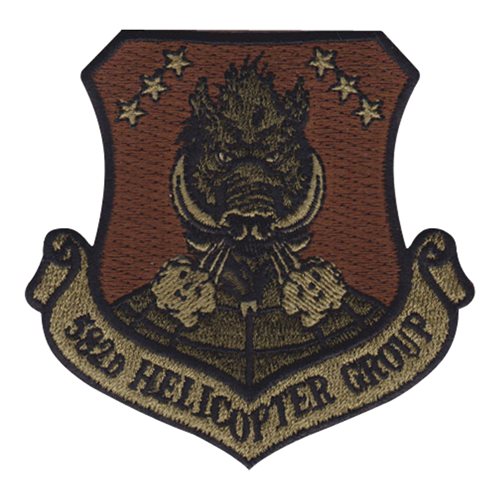 Custom patches for the 582d Helicopter Group at F.E. Warren AFB, U.S. Air Force. Our 582 HG patches are 100% embroidered with Velcro backing.