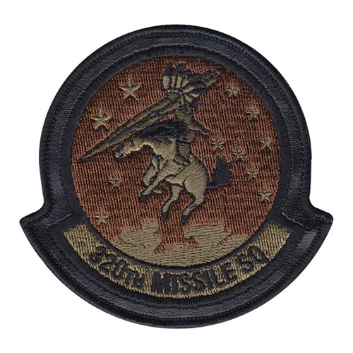 Custom patches for the 320th Missile Squadron at Francis E. Warren Air Force Base. Our 320 MS patches are 100% embroidered with Velcro backing.
