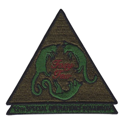 Custom patches for the 12th Special Operations Squadron at Cannon Air Force Base, New Mexico. Our 12 SOS patches are 100% embroidered with Velcro backing.