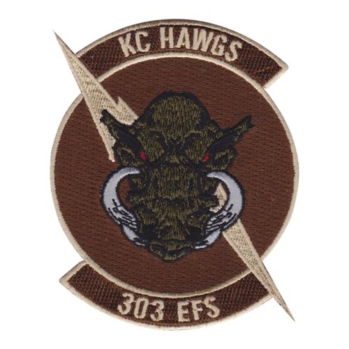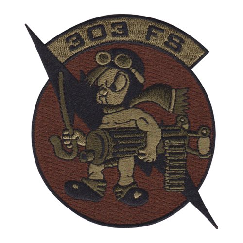 Custom patches for 303rd Fighter Squadron at Whiteman Air Force Base, Missouri. Our 303 FS patches are 100% embroidered with Velcro backing.
