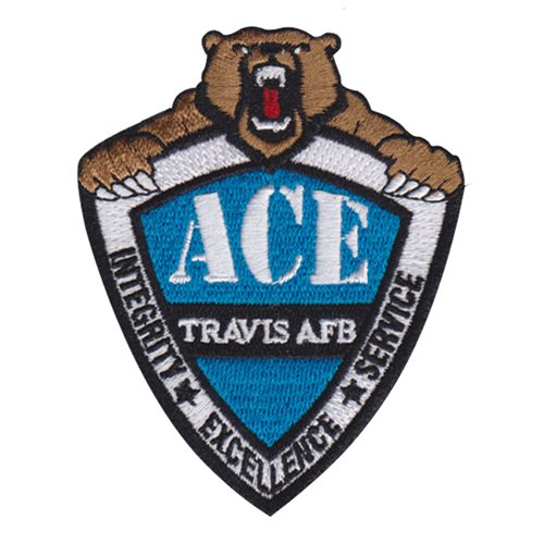 Custom patches for the Travis Air Force Base near Fairfield, California. Also known as the "Gateway to the Pacific". Our Travis AFB patches are 100% embroidered with Velcro backing.