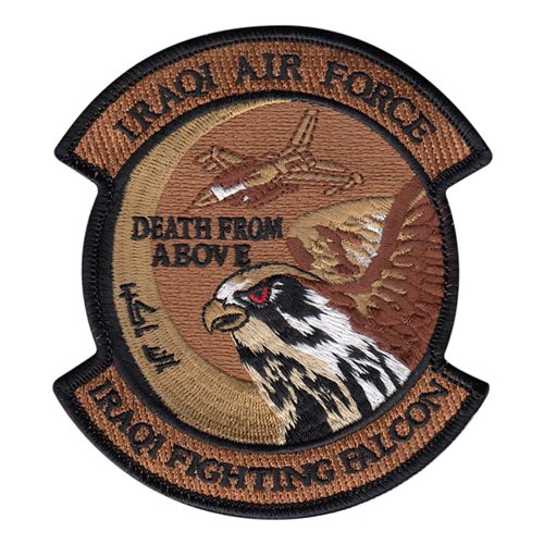 Custom patches for the 9th Fighter Squadron of the Iraqi Air Force (IQAF). Our 9 FS patches are 100% embroidered with Velcro backing.