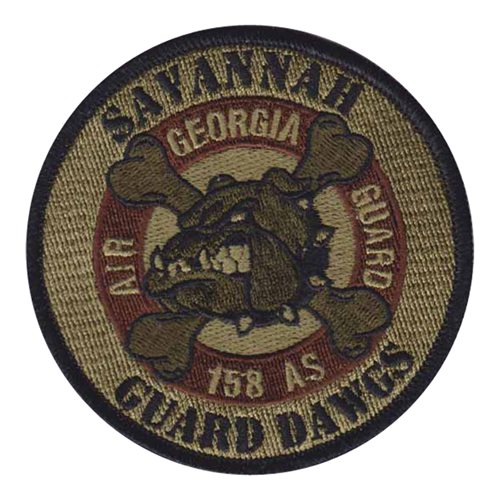 Custom patches for the 158th Airlift Squadron at Savannah Air National Guard Base, Georgia. Our 158 AS GA ANG patches are 100% embroidered with Velcro backing.