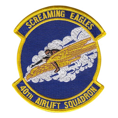 Custom patches for the 40th Airlift Squadron at Dyess Air Force Base, Texas. Our 40 AS patches are 100% embroidered with Velcro backing.