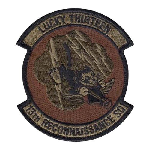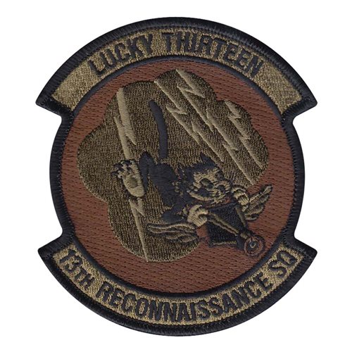 Custom patches for the 13th Reconnaissance Squadron at Beale Air Force Base. Our 13 RS patches are 100% embroidered with Velcro backing.