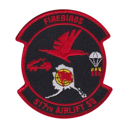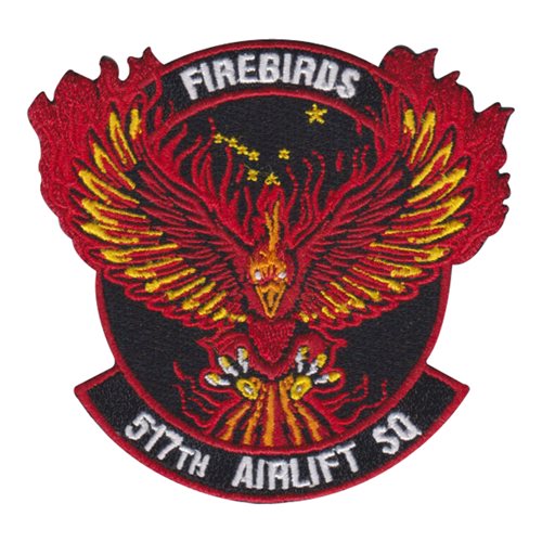 Custom patches for the 517th Airlift Squadron at Joint Base Elmendorf-Richardson, Alaska. Our 517 AS patches are 100% embroidered with Velcro backing.