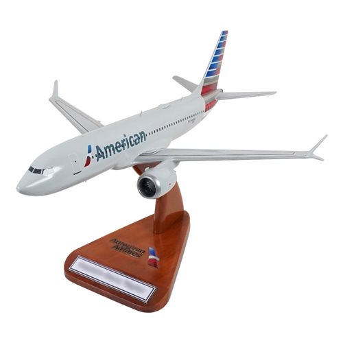 Custom commercial airplane models of American Airlines. We will create your American Airlines livery custom model of any aircraft type. Your solid mahogany wood model is 100% customized, and includes a personalized stand.