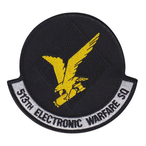 Custom patches for the 513th Electronic Warfare Squadron at Eglin Air Force Base, Florida. Your 513 EWS patches are 100% embroidered with Velcro backing.