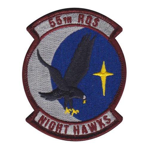Custom patches for the 55th Rescue Squadron at Davis–Monthan Air Force Base, Arizona. Our 55 RQS patches are 100% embroidered with Velcro backing.
