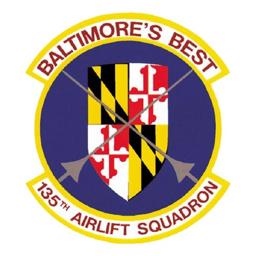 Custom patches for the 135th Airlift Squadron at Warfield Air National Guard Base, Middle River, Maryland. Your 135 AS patches are 100% embroidered with Velcro backing.