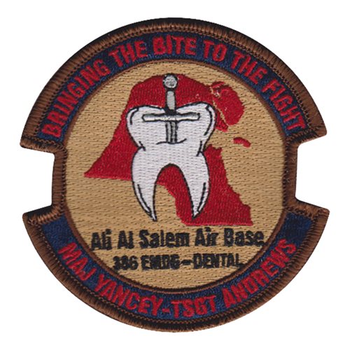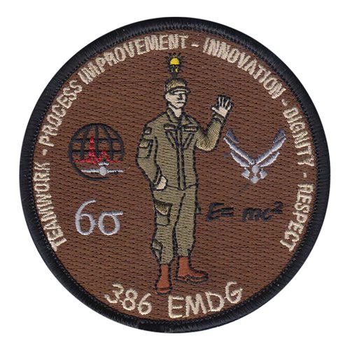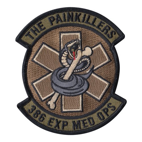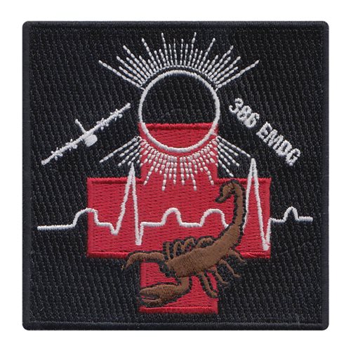 Custom patches for the 386th Expeditionary Medical Group. Your 386 EMDG are 100% embroidered with Velcro backing.