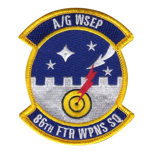 Custom patches for the 86th Fighter Weapon Squadron at Eglin Air Force Base, Florida. Our 86 FWS patches are 100% embroidered with Velcro backing.