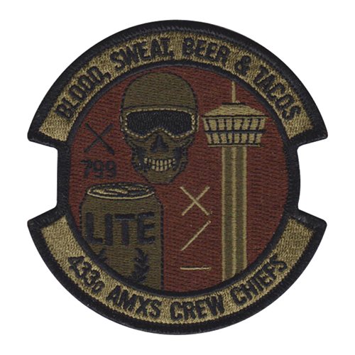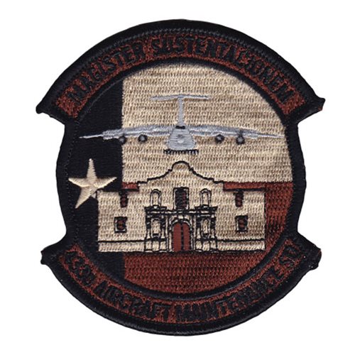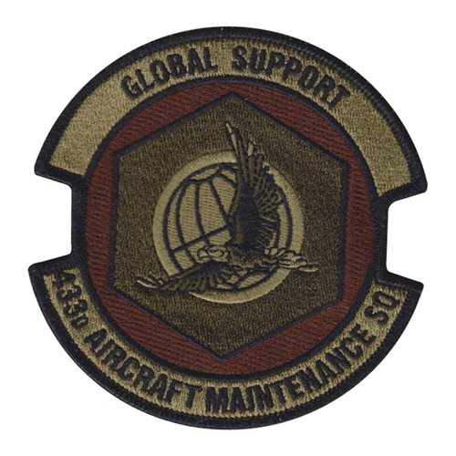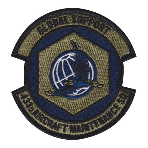 Custom patches for the 433rd Aircraft Maintenance Squadron at Lackland Air Force Base, Texas. Our 433 AMXS patches are 100% embroidered with Velcro backing.