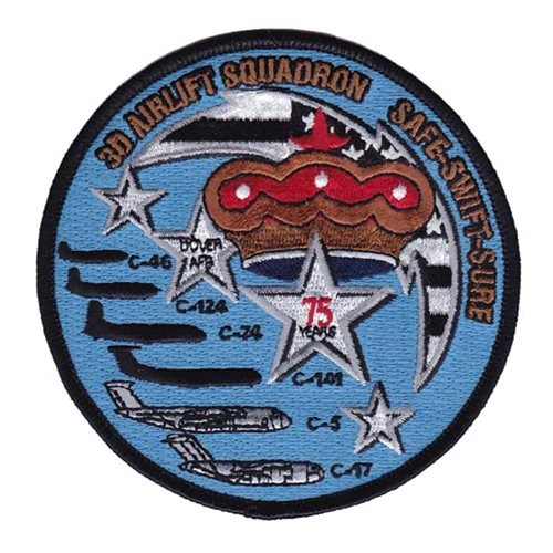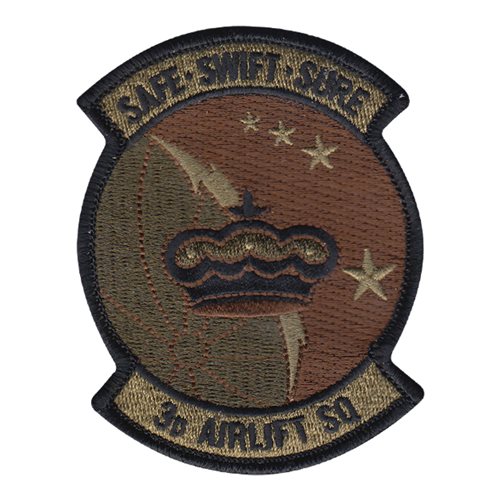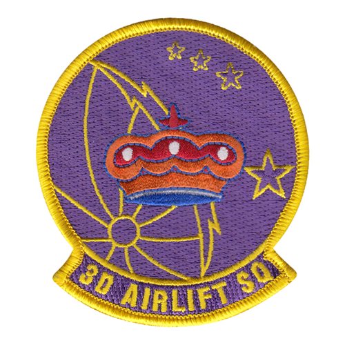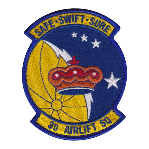 Custom patches for the 3rd Airlift Squadron at Dover Air Force Base near Dover, Delaware. Your 3 AS patches are 100% embroidered with Velcro backing.