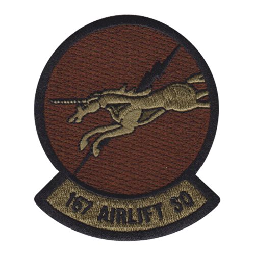 Custom patches for the 167th Airlift Squadron at Air National Guard, West Virginia. Your 167 AS patches are 100% embroidered with Velcro backing.